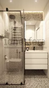Прямоугольная квартира студия планировка которой создается дизайнерами нашей компании Ionosfera, также может быть уютной и комфортной. В таких случаях в приоритете спальня или зона отдыха, которая выносится к окну. Диван или кровать размещаются напротив тумбы с телевизором. Кухню планируем отдельным «уголком», который можно обозначить подходящим видом перегородки. Практически все студии — это квартиры с площадью до 60 м2 (в редких случаях — 100 м2). Поэтому главная задача дизайнера — это рациональное планирование. Для визуального расширения пространства следует не только оставить минимальное количество перегородок, но и: