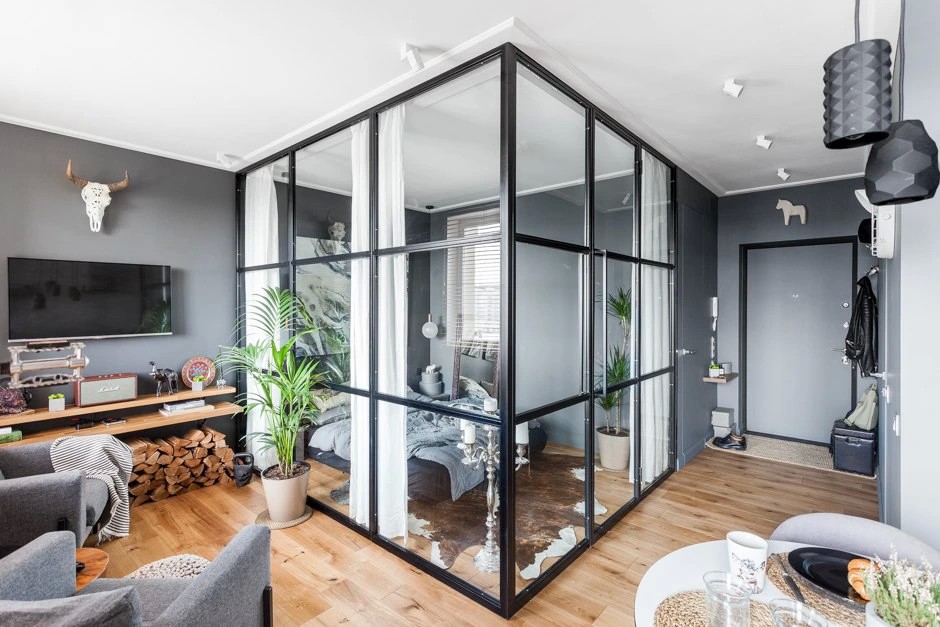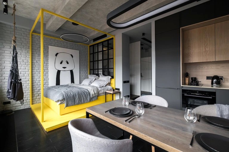 При правильном планировании даже в сравнительно маленькой квартире достаточно пространства и света, а квадратных метров хватает на практичное размещение мебели, систем хранения, бытовой техники, предметов декора. Обычно студии — это однокомнатные квартиры, хотя встречаются варианты из нескольких комнат, одну из которых соединяют с кухней.